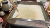 ここの「あんぱん」は100%酒種で醗酵させているのです。酒種あんぱんは種の仕込みから出来上がりまでに11日間ほどかかるそうで、量産できません。よって、本店とデパートなど限られた場所でのみ購入できるのです。また、創業から100年以上経つ現在でも開発当時の酒種発酵種と製法で、銀座の本店ビルの7階、8階で焼いています。だから作り立て。ほんのり温かいものが買えます。