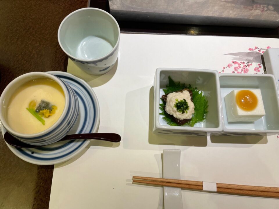季節ごとに内容が変わるコース料理は、まさに日本の四季を味わえる構成。 盛り付けも美しく、料理が運ばれてくるたびに友人が「Beautiful!」と声を上げていました。豆腐しゅうまい、湯豆腐、湯葉揚げなど、どれも優しい味わいで、 「日本食はヘルシーで美しいね」ととても気に入ってくれて大成功!
