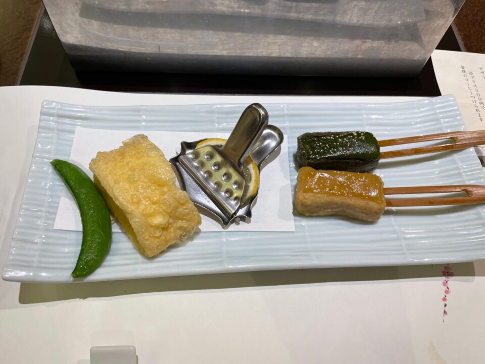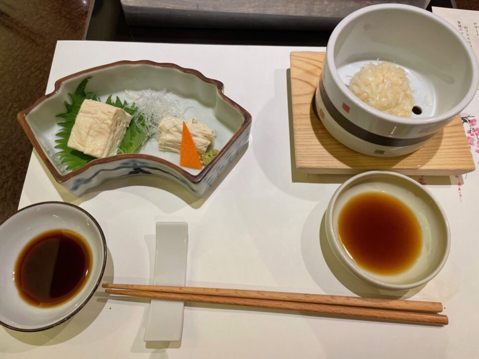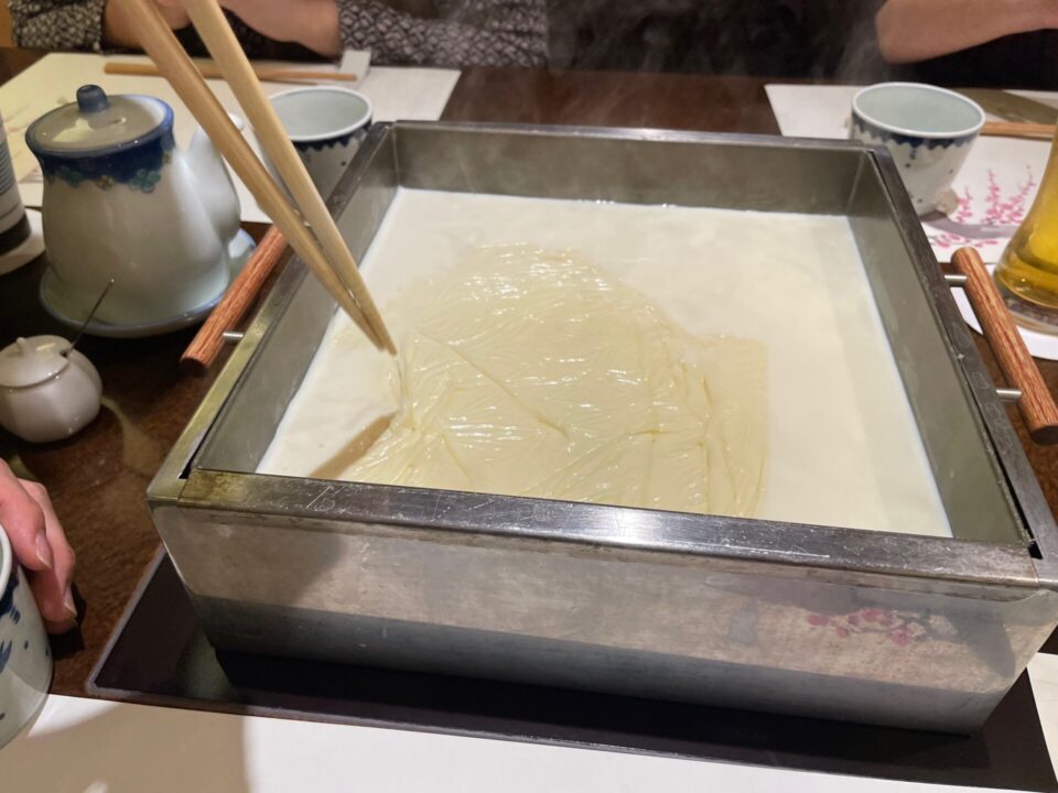 特に湯葉は、テーブルで引き上げる様子がちょっとした“体験”になり、友人も興味津々。 「こんな料理は初めて!」と写真を撮りながら楽しんでいました。豆乳が続く限り、湯葉が作れるのも、良いです。無限湯葉。最後のほうになると豆の味が濃くなってくるのも一興。